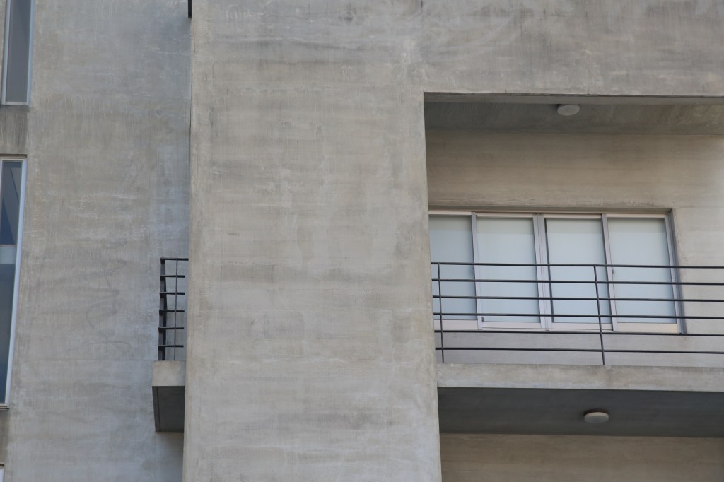 坐落於住宅區的角地上,雖然只是棟二、三層樓的房子,但是拔地而起連續三層的條碼是水泥粉光立面,硬是創造出超越其規模應有的尺度感。